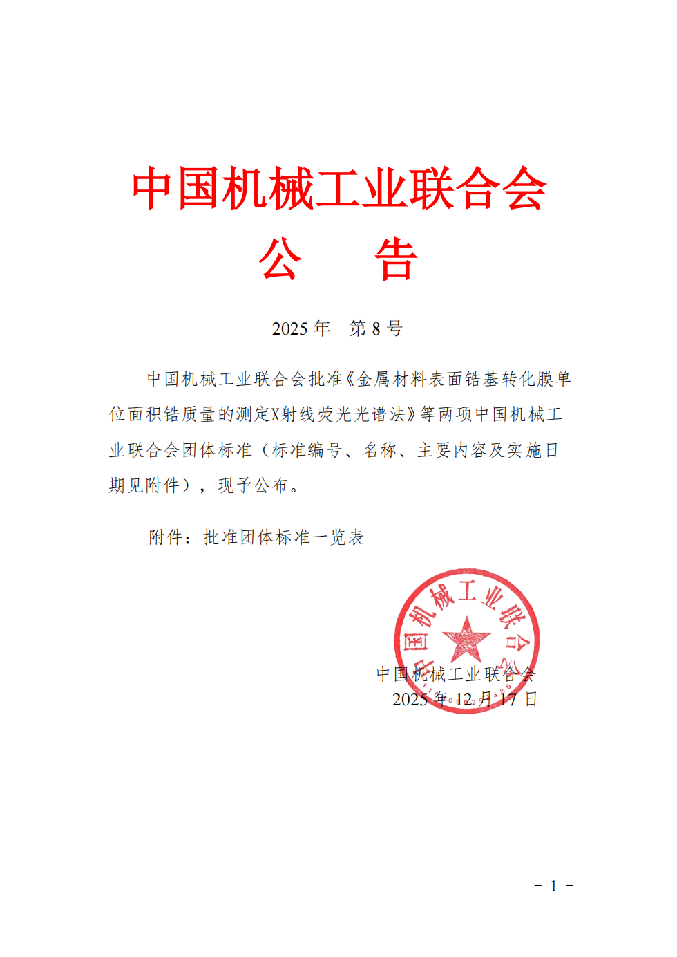 图|中国机械工业联合会公告