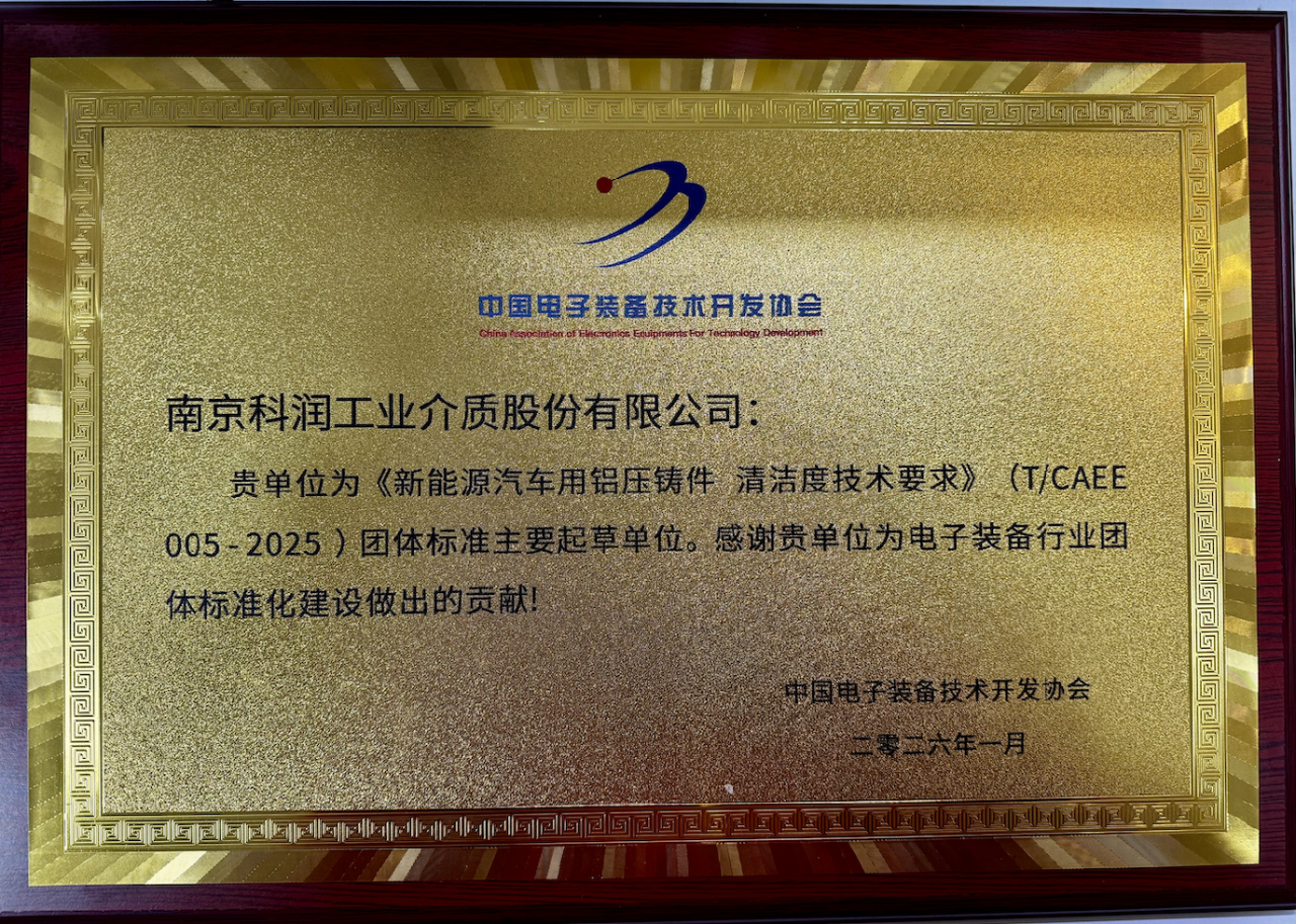 作为该标准主要起草单位之一,南京科润工业介质股份有限公司深度参与了标准编制与技术条款研讨,助力新能源汽车关键零部件清洁度控制走向“可量化、可检测、可追溯”的统一规范。