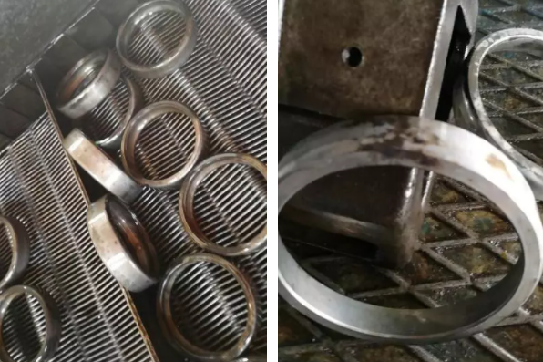 对在用油品进行检测,发现油品冷却性能正常,固体杂质含量为1.23%(重量百分比)。检测结果表明:油中含有大量杂质,淬火时杂质会在产品表面积聚,最终影响产品的光亮性。