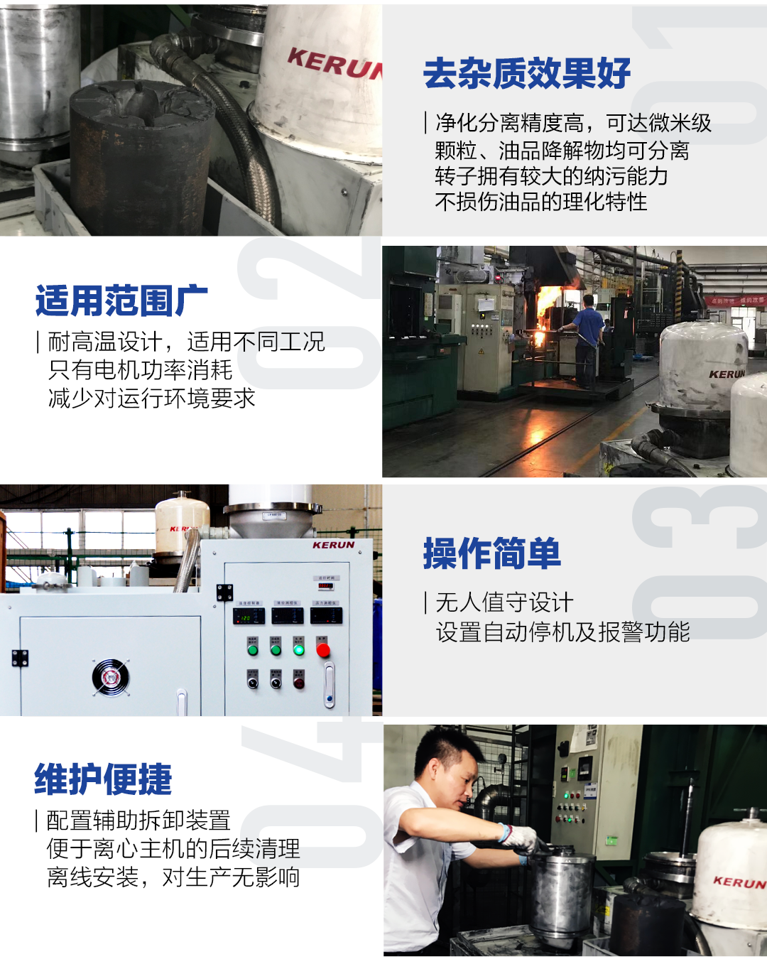 区别于通过滤芯来拦截杂质的传统式滤油器,KR-COP600MT的工作原理是利用离心力将杂质颗粒从被净化的淬火油中分离出来。