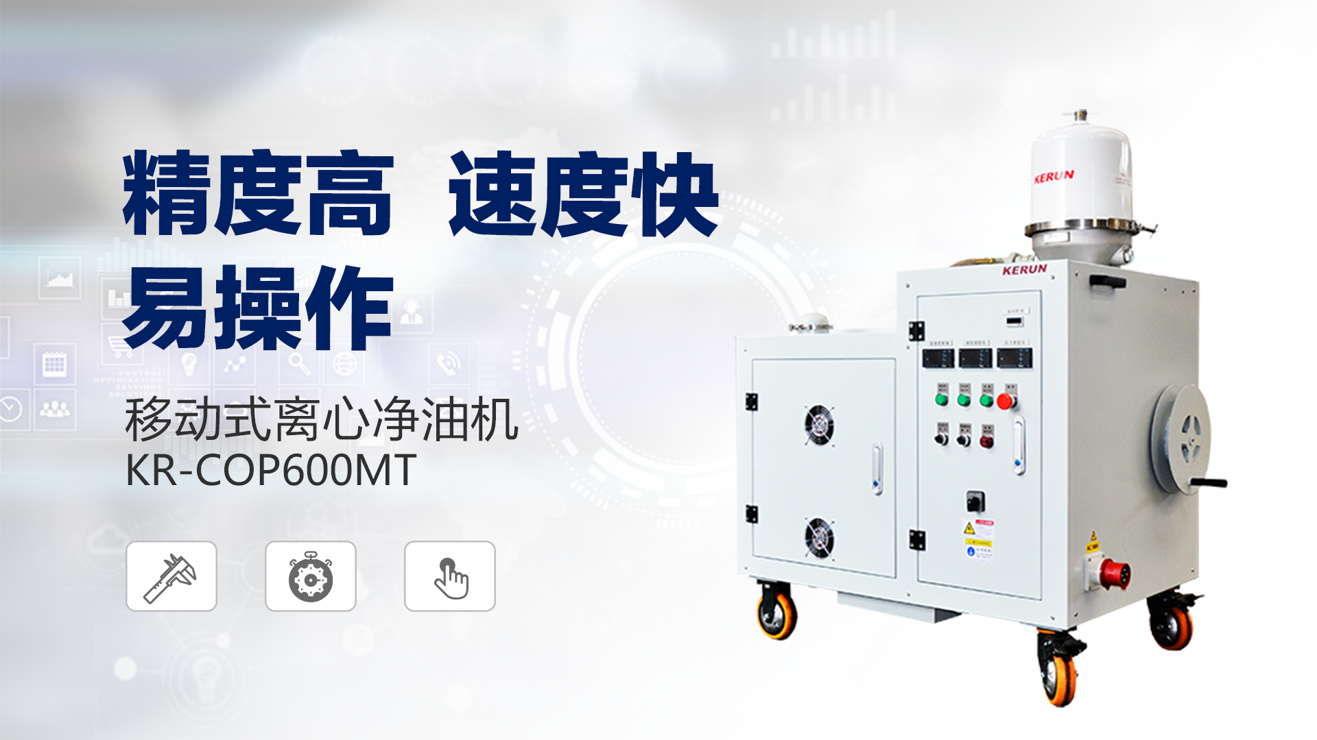“全程介质,全心互动”,科润知您所需。针对热处理企业对现场淬火油净化处理高效率过滤、低成本耗材的需求,我们自主研发设计了移动式离心净油机(KR-COP600MT),帮助企业改善油品品质,降低生产成本。